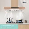 Vesta’s Copenhagen 36-inch rose gold stainless steel wall-mounted range hood is a durable companion for your kitchen. Featuring an ultra strong motor, a touchscreen panel, two baffle filters, and an LED light, this unit will elevate your cooking experience to new heights.